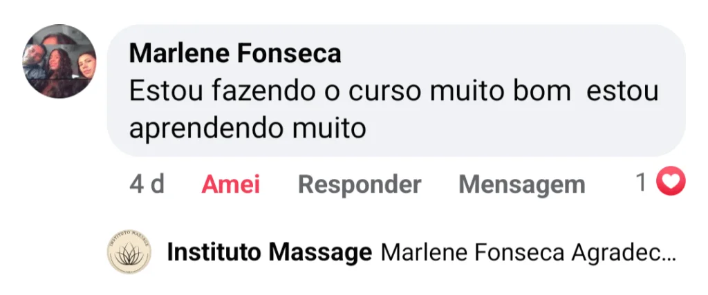 Os cursos do Instituto Massage são 100% online. Você poderá interagir com os professores e alunos na área de membros e terá suporte ilimitado pelo WhatsApp, podendo tirar dúvidas quando quiser.